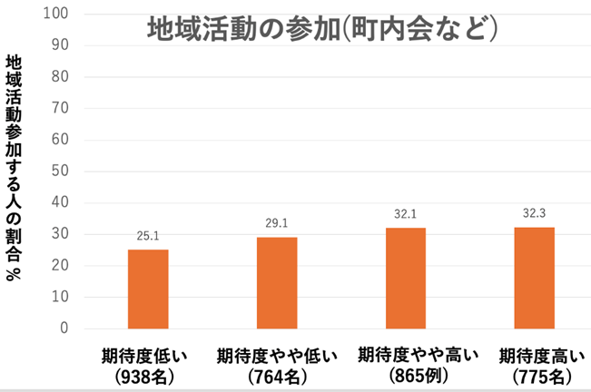 また、社会活動について調べたところ、年をとることを前向きに考えている人ほど、「町内会などの地域活動」に参加している割合が高いことが分かりました(図6)。